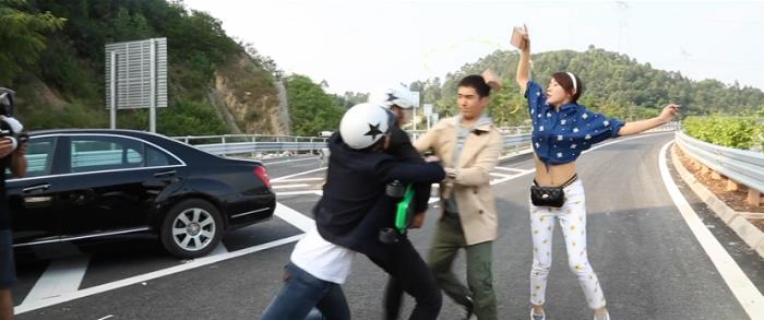 之后有一场更有趣的戏,母子两人亲身示范什么叫“塑料母子”。有一场抢滑板车的戏,需要闫妮饰演的母亲抄起搬砖砸与儿子冲突的人。