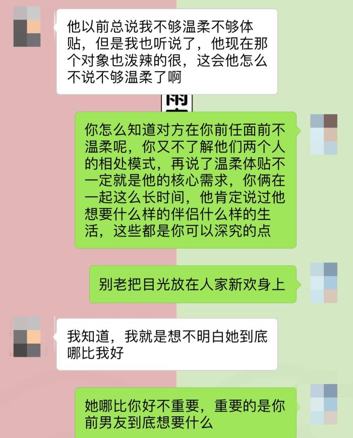 所以你要做的,不是去关注新欢有什么,或者你有什么,你关注的第一步,应该是你的前任他真正想要的是什么。