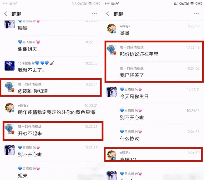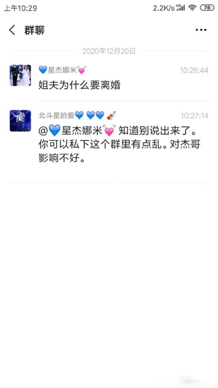 通过在网上搜索这几组聊天记录的来源,发现聊天记录并不是PS的,而是有人假冒张杰在粉丝群里散布离婚的虚假消息。