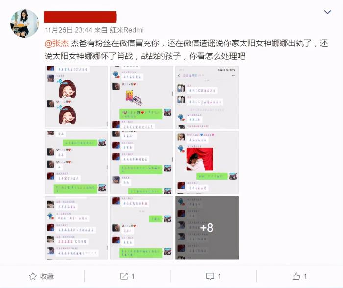另一份提到谢娜出轨并怀孕的聊天记录也被这位粉丝在11月26日晒了出来,同样是有人在群里冒充张杰,造谣谢娜出轨肖战并怀孕。