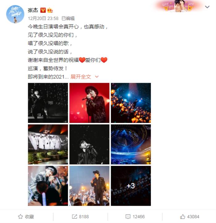 当晚,张杰也在生日演唱会结束后,发文表示自己很开心,真的很感动,并宣布了自己巡演的好消息,懒理外界的离婚谣言。