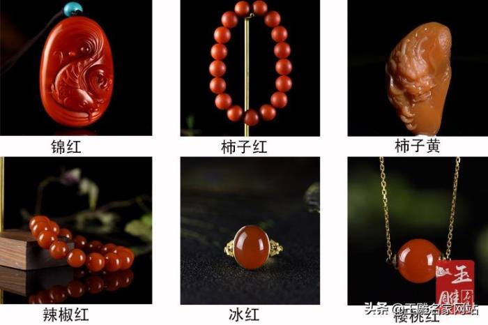 锦红是南红中最好颜色,是非常正的红色,就像国旗颜色一般,但是资源十分稀少市场上已经很少见了。柿子红是南红中仅次于锦红的颜色,就如熟透了的柿子一般的颜色,其实保山的真正的柿子红已经也很少见,现在在市场上流通的柿子红大多都偏黄色调,但有没有柿子黄的黄色调深。辣椒红的颜色就像辣椒一般红火,冰红的颜色比辣椒红浅一点,但却带有独特的荧光感,樱桃红颜色像樱桃一般,