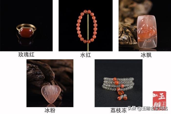 玫瑰红颜色像玫瑰一样红中带紫,水红颜色比较浅,像在樱桃红中兑了水之后的颜色,冰飘是在白色的冰地上带有红色的飘花,冰粉颜色很浅,是朱砂点零散分布后呈现的粉色效果,荔枝冻颜色像荔枝肉一般,朦胧细腻。从保山南红颜色分类图集中,大家应该了解南红的颜色分类了吧,好了,关于保山南红颜色分类图解讲解就到这了,如果大家还想了解更多的南红知识,可以关注我们玉雕名家头条号,玉雕名家有最全面和最丰富的知识在等你。