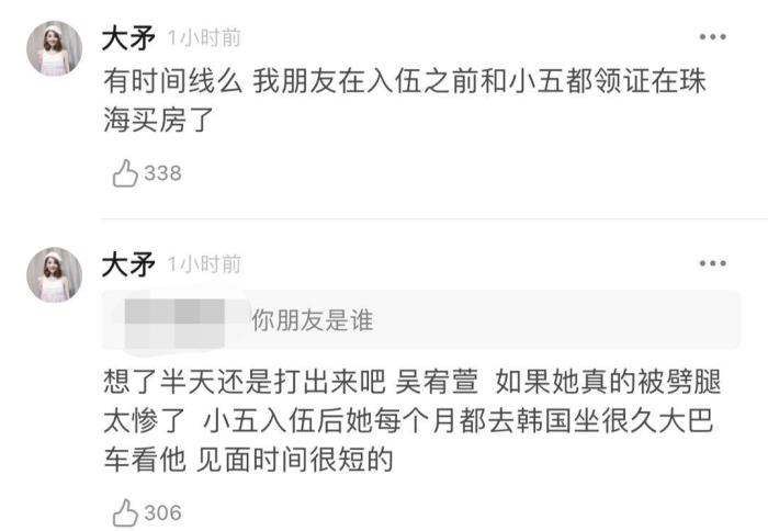 但是狗血爱情剧的情节往往不会这么发展,在爆料区一位网友表示其朋友在入伍之前和金恩圣都领证在珠海买房了,随后还爆出了其朋友的名字,是一位圈内人名叫吴宥萱。