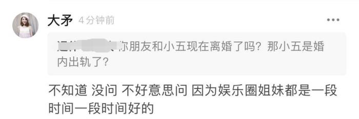 对于此,原先的爆料人也表示:"不知道后来分没分,因为和朋友后来关系没有那么近,但看她动态好像有一段时间挺丧的,我也没好主动问。"看来事情的真相还是当事人才能清楚了。