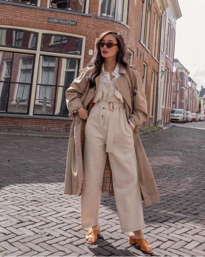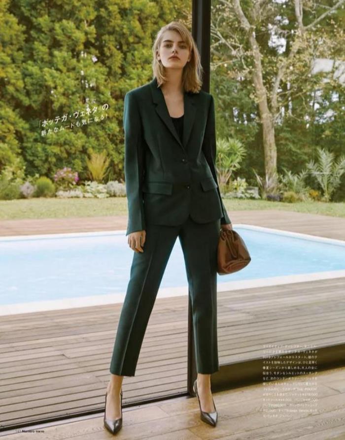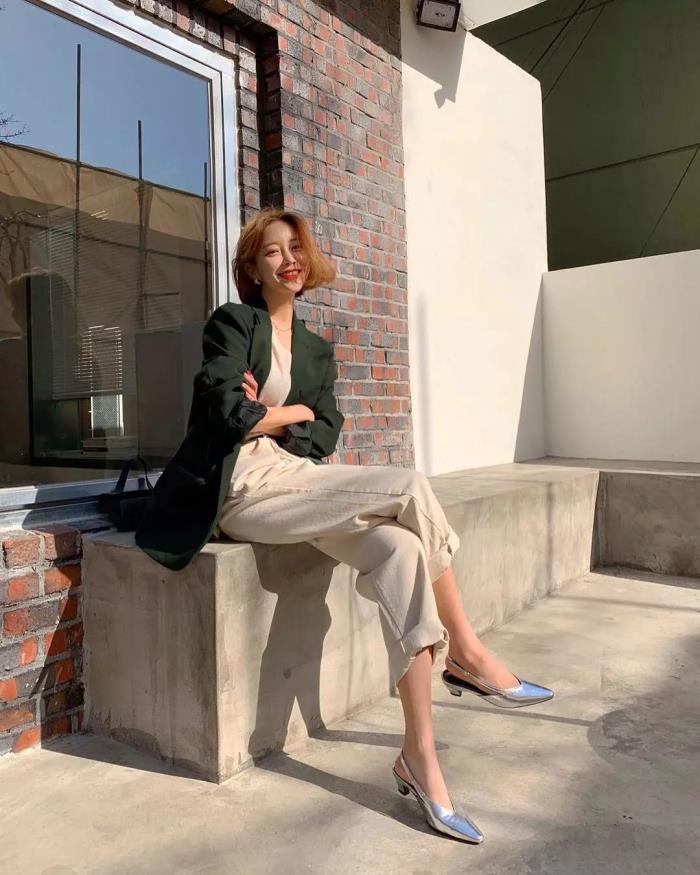 直筒裤,没有阔腿裤那么宽大的裤脚,修腿遮肉还显瘦,挽起裤脚的潇洒样子哪怕穿着简单衣服,也能流露大气的一面,搭配西装成为春天最实用的穿法,配尖头单鞋强调温柔女人味。