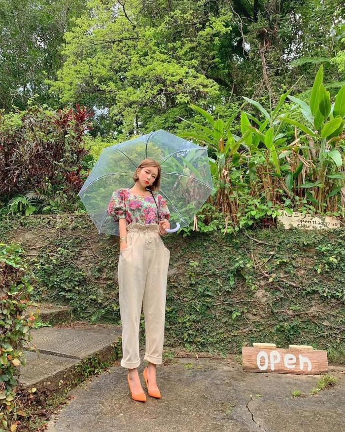 花苞裤有着超高的腰线,再加上腰部呈曲线花苞设计,显瘦显高,同时还具有女人味。花苞裤的裤型也很遮肉显瘦,可以用挽裤脚穿法露出纤细的脚踝,配一双高跟鞋,太美了。