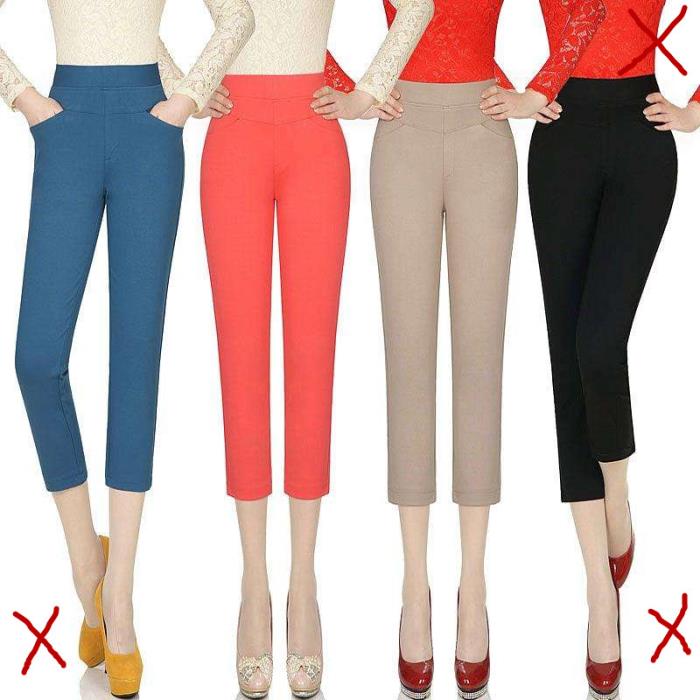 还有这类紧腿七分裤,也叫铅笔裤,曾一度受女人们热捧。这类长度也一定慎选,因为当你穿上的瞬间,感觉自己挤身进大妈的行列,要多老气有多老气。因为除了长度之外,这类裤型也不够时尚。