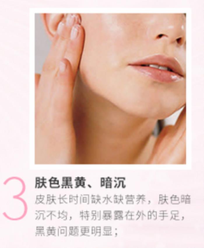5.减少去角质产品的使用频率,以避免过勤的去角质破坏皮肤保护膜。2周一次,护肤品也要随季节转换而及时进行调整更新,如果你现在的护肤品在使用后会感觉皮肤有刺痛感,甚至会发红发痒,那就该马上更换了。应当选择低刺激性的滋润度较高的护肤乳液/乳霜,在功能上应加强保湿,建议可选用含有玻尿酸、胶原蛋白等保湿成份的滋润面霜或霜状乳液来锁水保湿。 (换成自己家产品)