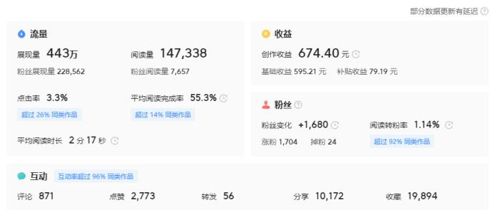比如,这一篇文章的阅读量是14万,收益是670多元。