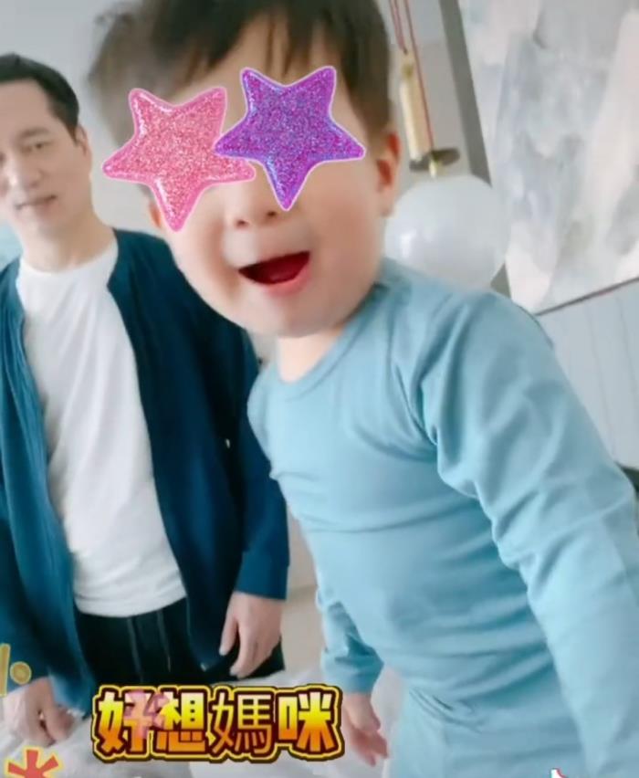 视频中,安以轩的大儿子穿着蓝色连体服,即便被特效遮住眼睛,也还是能看出软萌可爱。他奶声奶气的说着想妈咪,也想爸爸,乖巧的模样十分惹人喜爱。安以轩的老公站在旁边,一脸开心的看着母子俩互动,长相帅气,笑容清朗,父子俩十分相像。