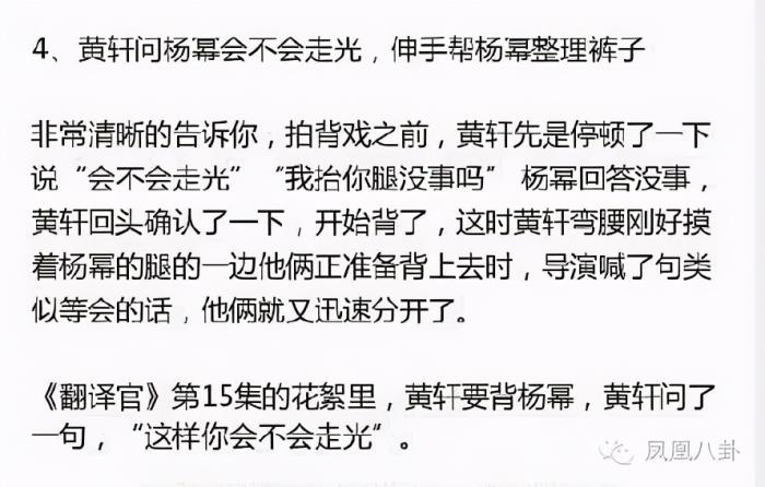 最为争议的要数,在花絮中黄轩对杨幂摸大腿的视频,黄轩为此被解读为不绅士的作为。