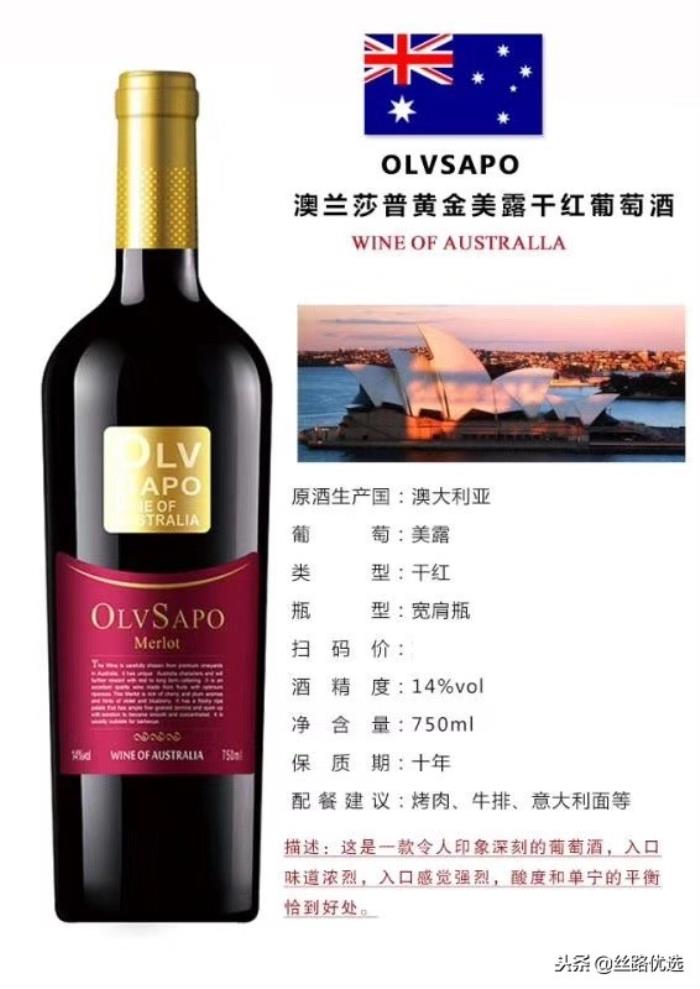 澳大利亚地理位置优越,适合葡萄种植和生长。澳大利亚自然环境优良,地广人稀,没有污染,绝对绿色产品。澳大利亚常年阳光充沛,葡萄有了足够的日照,生长良好,没有任何污染,酿出的酒自然丰满浓郁,并且酒的口味柔和,果香浓郁,口感清新,极易入口,尤其适合初饮葡萄酒的人士,非常适于搭配中餐菜肴。澳大利亚锐意创新的多元文化背景的酿酒经,以及崇尚保留葡萄品种的最高度原味和果香的酿酒哲学,使得澳洲葡萄酒充满个性和活力。今天推荐一款澳大利亚OLVSAPO美露干红葡萄酒