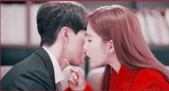 剧里和男主池贤宇创造了不少经典的吻戏镜头▼