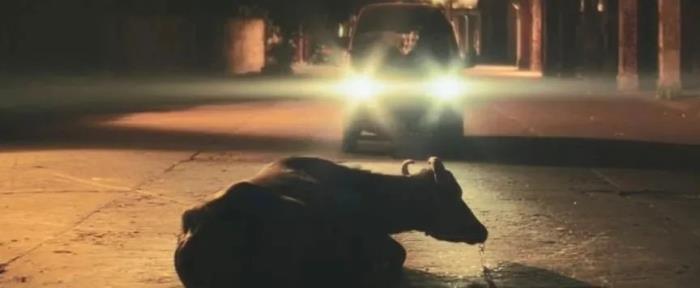 它卧倒在马路的中央,挡住了空调维修工王学明(彭于晏饰)的路。这个男人不得不调转车头,一不留神就撞到了一个人。