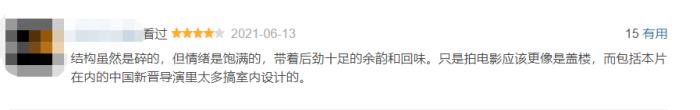 “结构虽然是碎的,但情绪是饱满的,带着后劲十足的余韵和回味。”