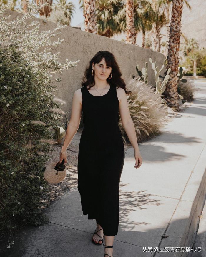 那像这种宽松的自带高腰感的连衣裙就很不错,第一是宽松,第二有腰线,而且还是高腰设计,对比起直桶式的连衣裙,这种连衣裙既让你显高又让你显瘦。
