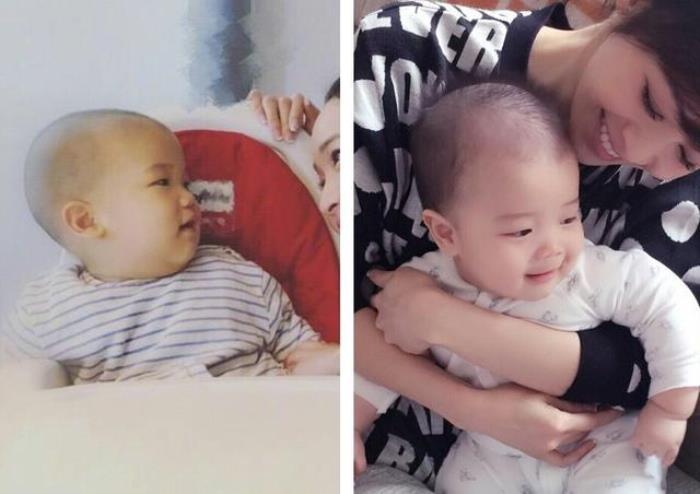 左边是二儿子的小时候照片,右边是大儿子小时候的照片,看得出两个宝宝都随了妈妈的长相,十分秀气,两个小家伙还真的是像,还好不随爸爸,不然就没有这帅气的模样了。