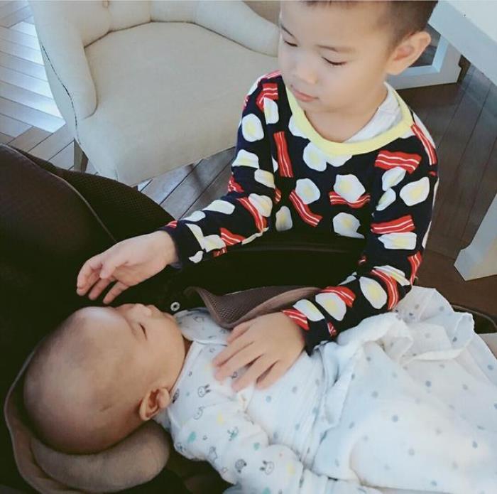 看着两兄弟神似双胞胎,事实上,两兄弟相差3岁,大儿子是2014年出生的,据说当时是剖腹产,眼睛又大又亮,颜值很高,长相遗传了妈妈,长大后不知道要迷倒多少少女。