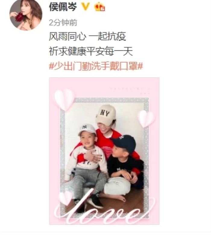 2月14日,侯佩岑在社交平台上发布一条动态,晒出了母子三人的照片,还发文祈求健康平安,抱着两个儿子的侯佩岑十分开心,毕竟多了两个小情人来守护自己。