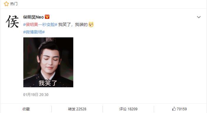 其实《我就是这般女子》虽然槽点也有很多,但是总体来看的话,这部剧还是很值得看一下的。作为主演的关晓彤和侯明昊也很有意思,在这个“眼神鲨”的剧情出来以后,本尊还亲自带着话题发文调侃自己:“我笑了,我装着”,随后配上了自己“变脸”的动图。本来“眼神鲨”渲染出来的气氛就很刺激了,侯明昊这么一玩自己的梗,让大家忍不住笑出了声。