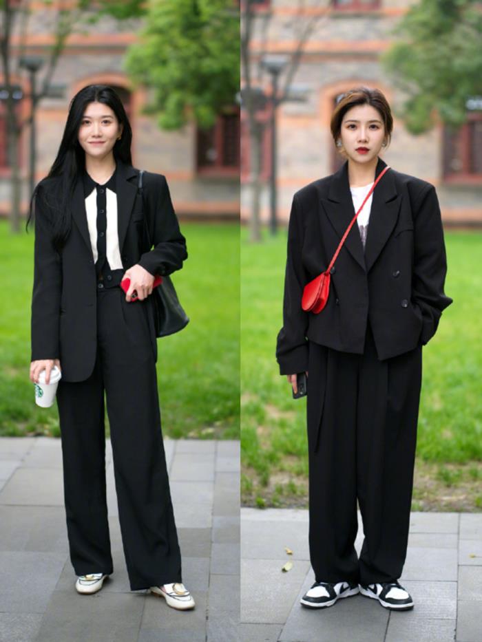 今天我们就来看看杭州的时髦精们都是怎么把黑裤子穿出不一样的时髦感:
