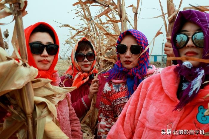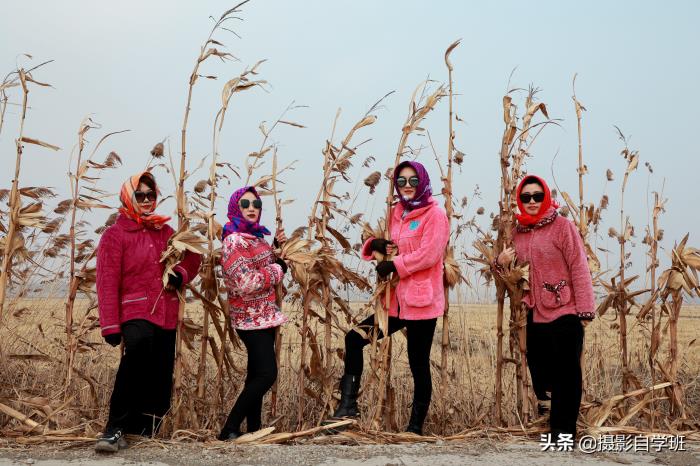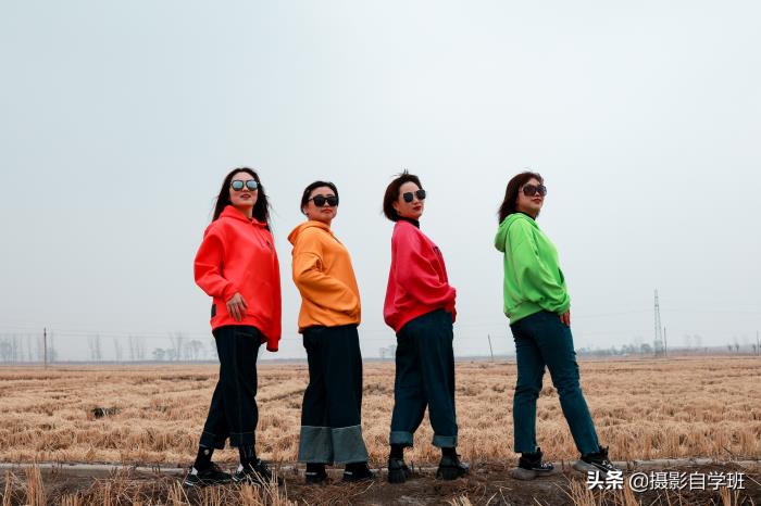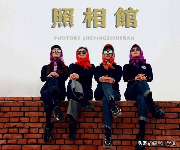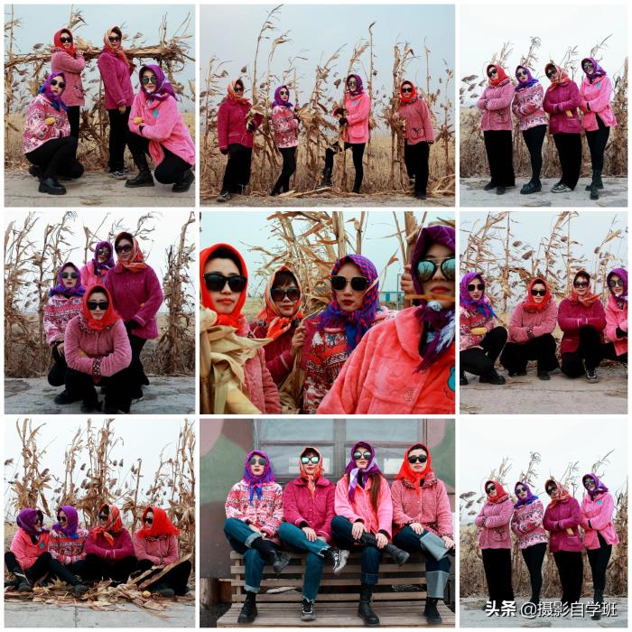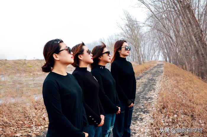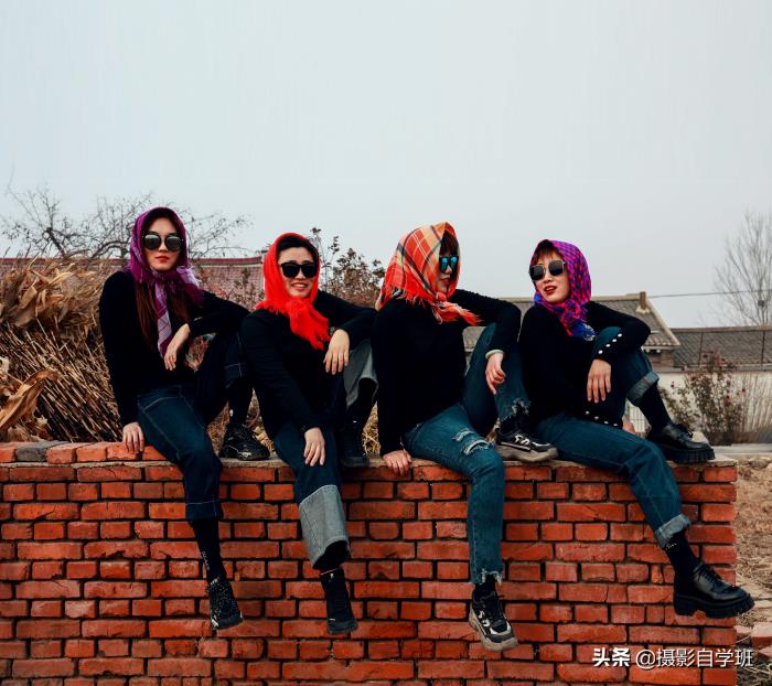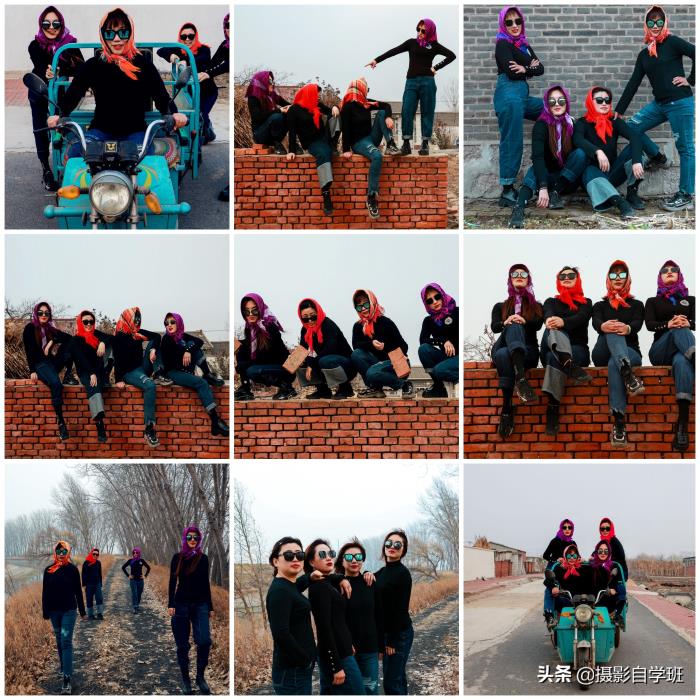 (2)在统一以外,还要各有特色,这样合影看起来才不乱,每个人都有一定的辨识度。比如黑衣服以外,她们的头巾,都不一样。