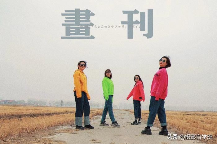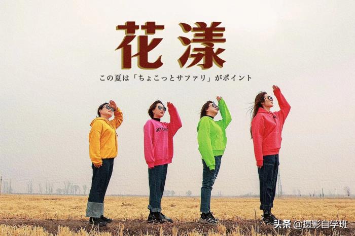 再比如下图,裤子、鞋、墨镜等带给人统一的感觉(当然也包括姿势,后面详细说摆姿),各不相同的衣服,又让每个人都有自己的特色。