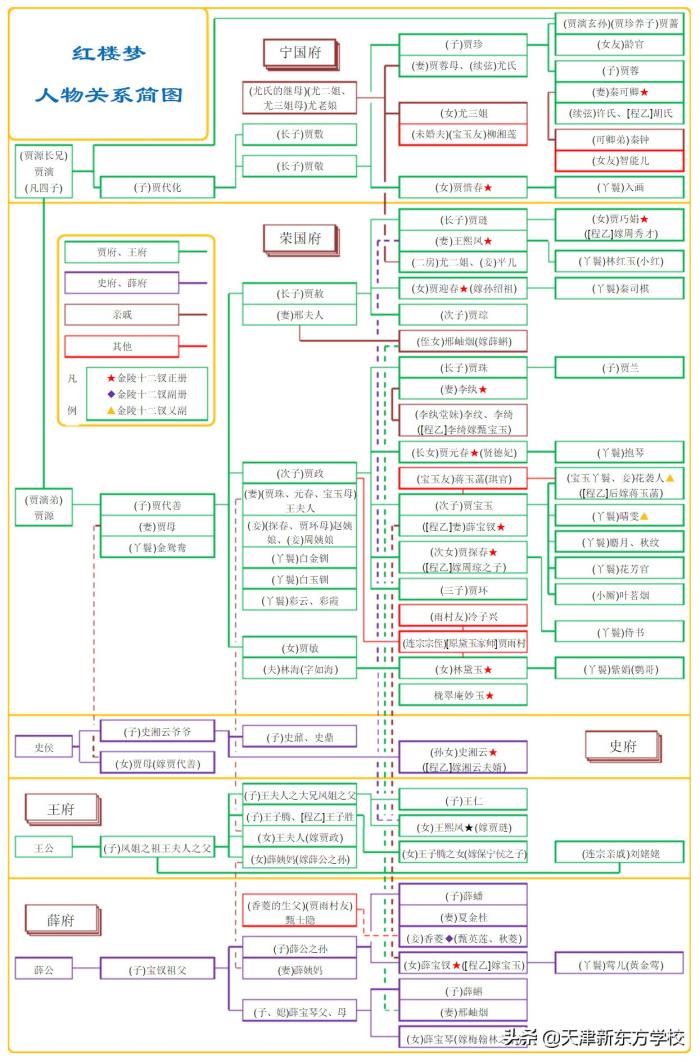 天津新东方小编今天整理了四大名著的人物关系图谱,方便同学们记忆!