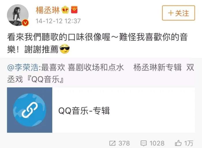 而在新专辑的记者会上,公司邀请了杨丞琳作为特邀嘉宾。在现场,杨丞琳直言道:李荣浩在音乐上就是我的菜。