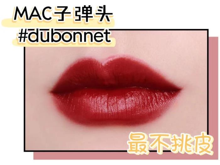 牛血色系最正一枝花DUBONNET红调略偏棕,薄涂厚涂都好看,一点儿不挑皮,Kiko435在它的基础上更紫,薄涂是清透红提,厚涂是比DUBONNET更暗的紫调牛血。