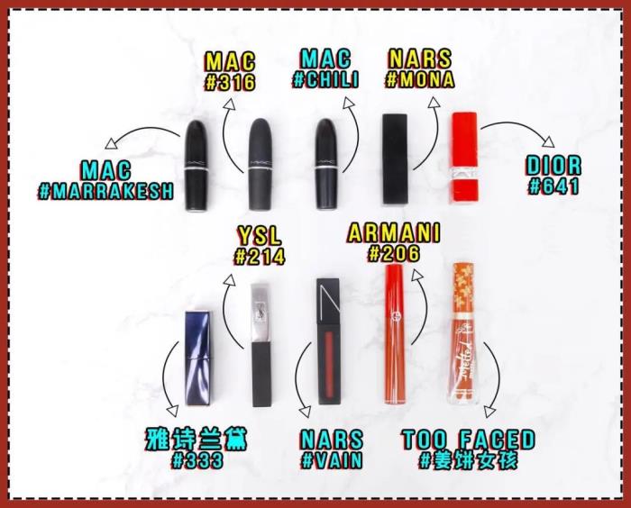 实不相瞒,尽管本人从业多年,但依然会被这些问题问住,毕竟色号与色号之间那点儿微妙的差别哪儿能说得清楚!所以这次我干脆整理出手上比较有代表性的39支口红,根据色系分成6个部分,直接!全部!试色对比给你们看!