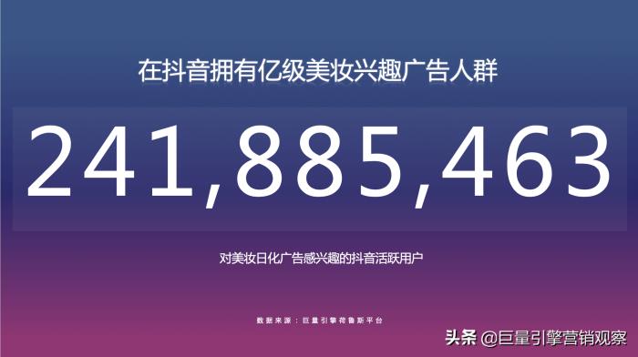 面对当前“云上”盛况空前的趋势,美妆垂类品牌希望最大化覆盖目标用户,而巨量引擎正是一个不可或缺的平台。数据显示,抖音拥有4亿高日活,其中,对于美妆日化感兴趣的用户达到2.4亿+。