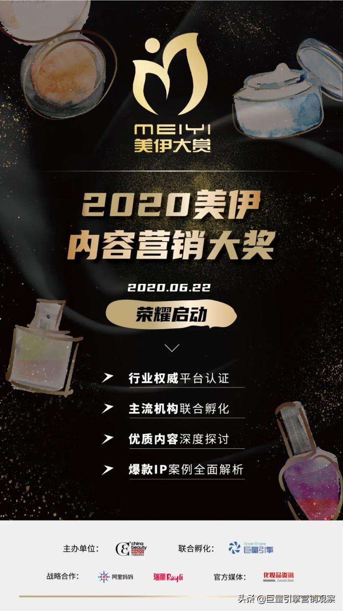 鉴于内容营销在线上场景的重要地位,CBE最具影响力美妆IP——美伊大赏今年还联合巨量引擎等主流优质内容产出和孵化的社交平台及机构,重磅开启“2020美伊大赏·内容营销大奖”,通过2020美伊年度优质内容大奖、最具影响力匠人创客大奖、最具价值服务机构大奖,从品牌、Kol、MCN三大维度全面洞察美妆内容营销。