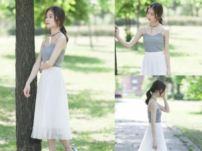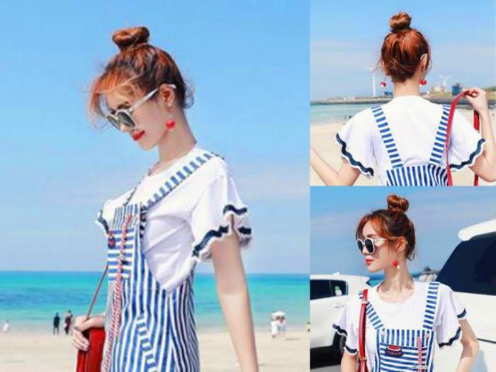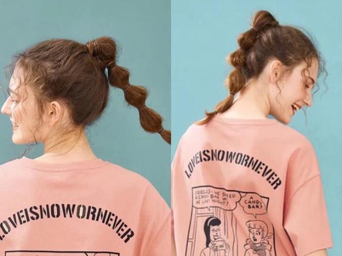 首先是半扎高马尾,相比全扎高马尾,因为多了一拨头发没有扎进去,显得格外可爱俏皮,所以它很适合走小清新路线的姑娘,服装搭配的难题也迎刃而解,而且最适合夏天穿搭的风格就是小清新了。另外,俏皮的半扎高马尾搭配卖萌减龄的空气刘海更撩人哦,相似的属性,完美搭调!