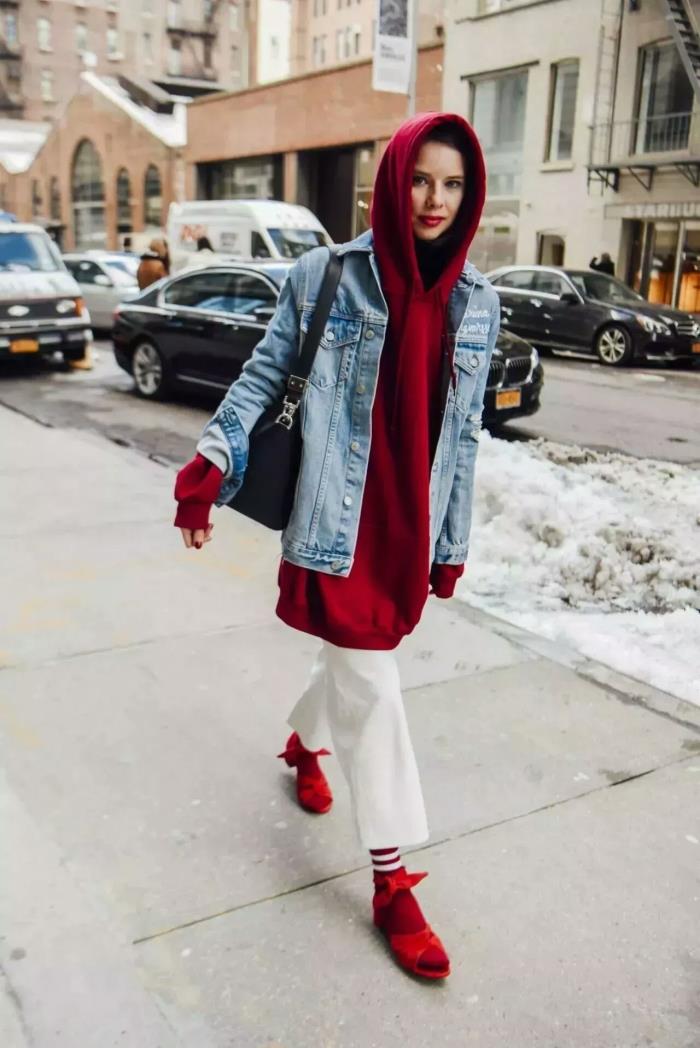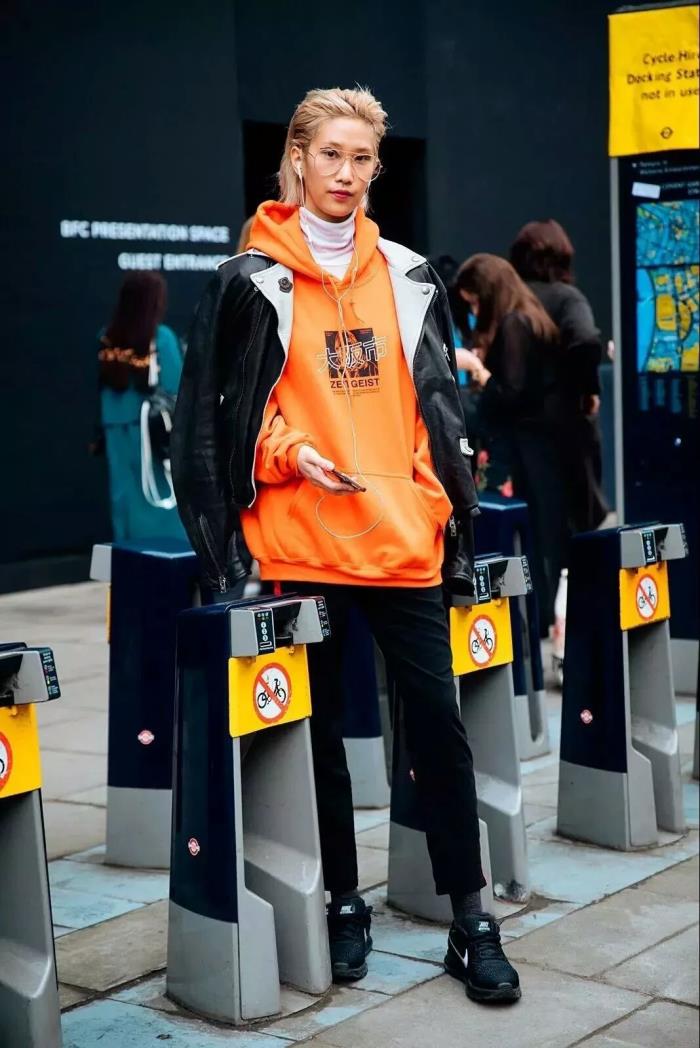 而如果不喜欢大面积的橘色,可以用橘色作为内搭,比如搭配在卫衣上,明显相得益彰。宽大的卫衣很自然地放大了橘色的温暖,并且领口微开,类似V领的设计既修饰了脸型,又营造了活泼俏皮的风格。这种搭配就很适合需要展示年轻活力元素的女生了。而选用橘色搭配白色,黑色,都是极为吸引人的存在了。而橘色卫衣外搭黑色外套,有一种低调的温暖,连肤色也在不自觉间明亮了很多。