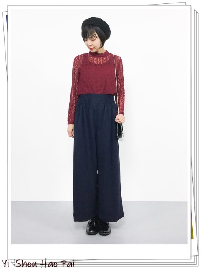 优雅的蕾丝上衣,内搭背心,享受蕾丝的独特透明感觉。建议你选择海军蓝与酒红色搭配,会显得很别致,而且平静的色彩增强了秋天的气氛。通过阔腿裤调节平衡,还可以实现漂亮的造型。