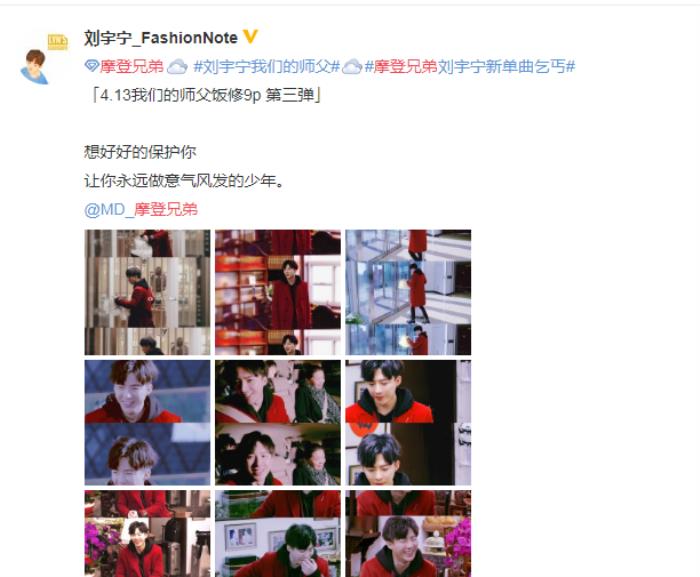 近日,摩登兄弟刘宇宁在自己个人微博发了一个动态,称自己新接了一部剧,里边的角色非常炫酷,感觉非常适合自己。