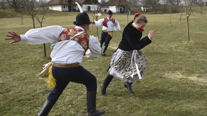 然而这样一个团圆的春日节庆,在捷克却有着一个听起来很像段子的风俗:在复活节星期一那天,家里所有男性成员,都要用一根系着彩带的鞭子,排着队打家里所有女性成员的屁股,据说能给女性带去健康。