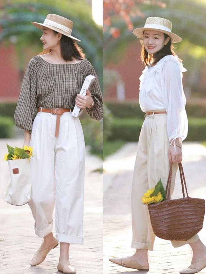 如白色、米色、杏色、奶油色或者奶茶色,既实用耐看,搭配阔腿裤又足够优雅大方。