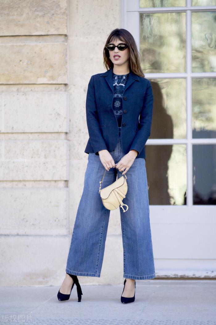 西装外套和牛仔阔腿裤一样都是通勤百搭的单品,将这两种单品结合在一起,真的是太合拍了,轻松就能穿出阔腿裤该有的气场。