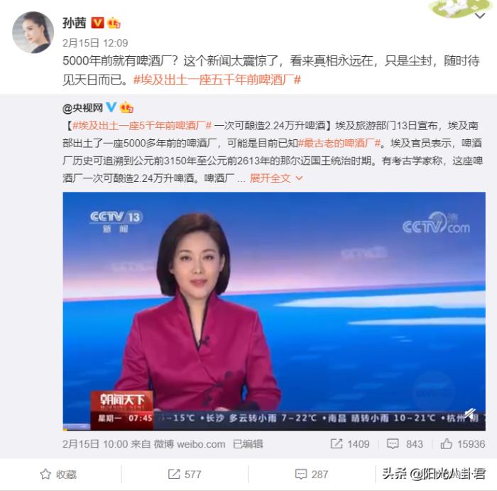 网友发现,在张小斐与孙茜前经纪人的事情登上热搜后,孙茜的微博突然转发了一条考古类新闻,当时,孙茜也配文写道:“看来真相永远在,只是尘封,随时待见天日而已。”