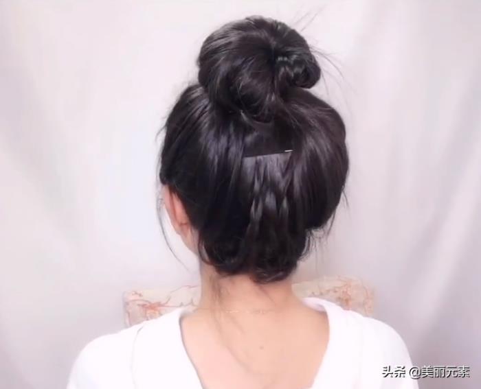 两边都固定完之后,这款超好看的丸子头就完成了, 是不是很简单呢。夏天这样扎丸子头绝对不会热,而且还很好看。这样扎丸子头,再短的头发也可以扎。夏季再也不怕热了。