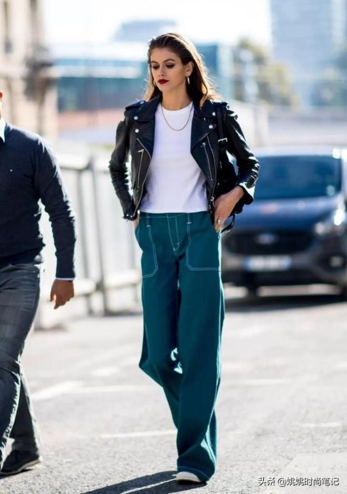 休闲风的老爹裤在一定程度上也不逊于牛仔,由于颜色的多样化更丰富了时装的搭配,也就出了更多的花式穿搭,越来越洋气。