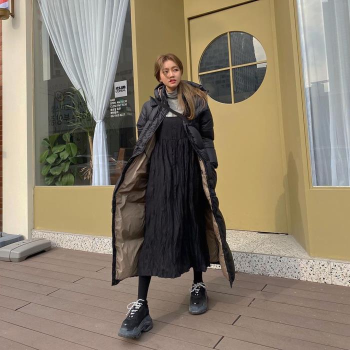 不少小伙伴担心厚衣服显胖,会选择紧身的裤子,再踩一双厚底的老爹鞋。