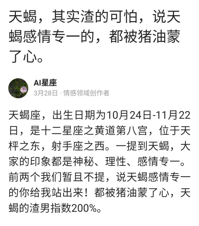 都说天蝎渣男、腹黑、爱虐人、难驾驭,甚至还有“珍爱生命,远离天蝎”的说法,虽然小编也写过“黑”天蝎的文章。可是,懂天蝎的人自然会懂,他们也不会跟那些人争辩什么,不懂他们的人让他们去随便乱说好了。