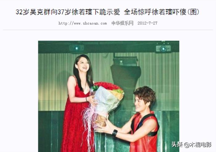 跟吴克群拍过MV的另一女星徐若瑄也跟他出过绯闻。同样是2012年,吴克群在新歌记者会上,手捧99朵玫瑰,向徐若瑄下跪示爱,引得全场惊呼。
