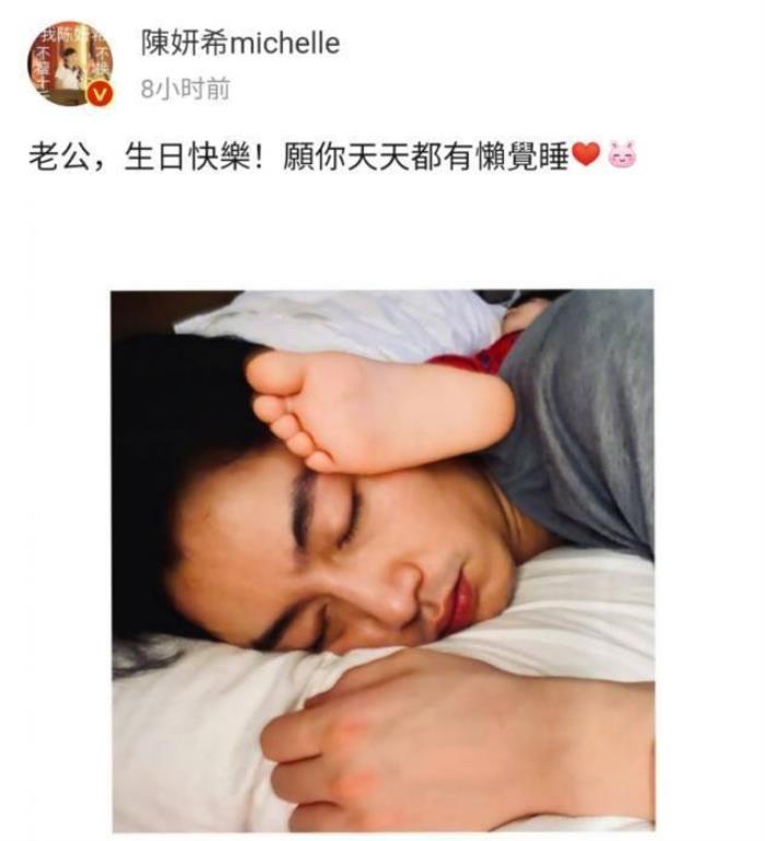 7月5日是陈晓34岁生日,凌晨陈妍希第一时间发微博为陈晓庆生,晒出他与儿子的温馨合照,并配文:“老公,生日快乐!愿你天天都有懒觉睡。”还配了一个爱心表情,字里行间都透露出对陈晓的关心。