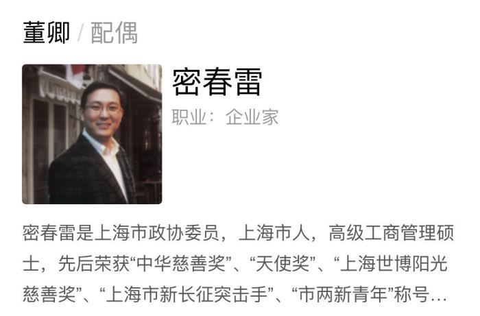 董卿的神秘丈夫也浮出水面。早在2012年就被媒体拍到过两人在一起的照片,照片中的人就是董卿的丈夫——密春雷。