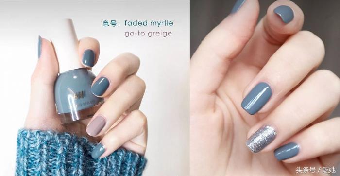 其中faded Myrtle迷雾蓝这个色号无敌爆炸好看,这个夏天一定要涂的指甲油,看起来文艺十足,而且不会显手黑。